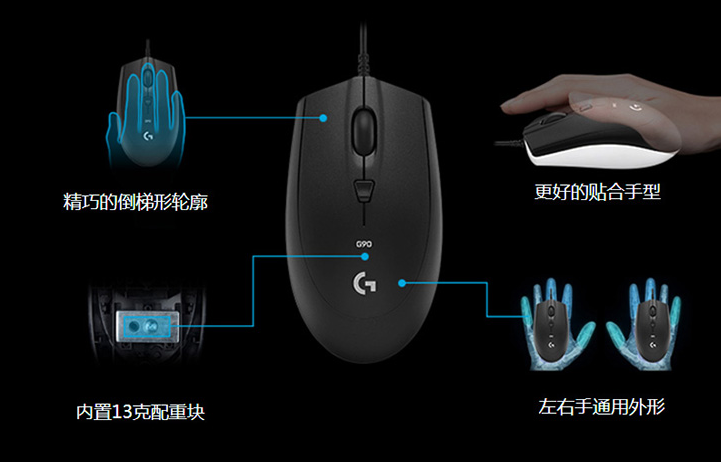 羅技(G)G90有線游戲鼠標 辦公電腦筆記本通用鼠標 家用USB光電鼠標 吃雞鼠標電競鼠標 黑色